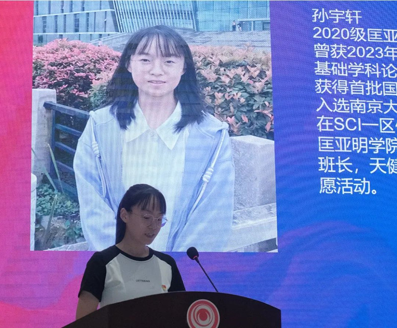 南京大学匡亚明学院“施滉班”学生孙宇轩分享学习雨花英烈施滉事迹与精神后的感悟,他表示,未来当以雨花英烈事迹与精神为指引,将革命先辈不怕牺牲、英勇奋斗的品格融入到日常的学习和生活中来,坚定信念、付诸行动、精于专业,用奋斗精神塑造自我,不断学习新思想和新技术,抓住核心问题,建立创新性想法,自觉担当时代重任,书写新时代中国青年的光辉篇章。