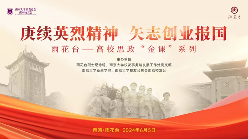 为贯彻落实习近平总书记“把红色资源利用好、把红色传统发扬好、把红色基因传承好”的重要指示精神,2024年6月5日下午,南京大学南京校友会活动暨雨花台——高校思政“金课”系列“赓续英烈精神,矢志创业报国”主题活动在雨花台成功举办。南京大学党委常委、副校长邹亚军,校友事务与发展工作处、新生学院师生和南京校友会代表60余人出席活动。