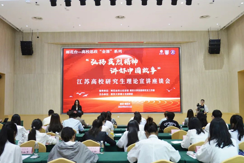 6月11日,雨花台—高校思政“金课”系列之“弘扬英烈精神,讲好中国故事”江苏高校研究生理论宣讲座谈会在雨花台烈士纪念馆召开。本次座谈会由南京大学党委研究生工作部、雨花台烈士纪念馆共同指导,南京大学博士生讲师团联动省内十余所高校研究生理论宣讲团体共同举办,旨在深入贯彻落实习近平总书记对宣传思想文化工作的重要部署和关于用好红色资源、赓续红色血脉的重要指示精神,扎实推动江苏高校研究生理论宣讲团体联学共建、融汇互通。江苏省14所高校研究生理论宣讲团体代表齐聚一堂,共同探讨建设组织共建、人才共育、资源共享、成果共创的理论宣讲工作新格局。