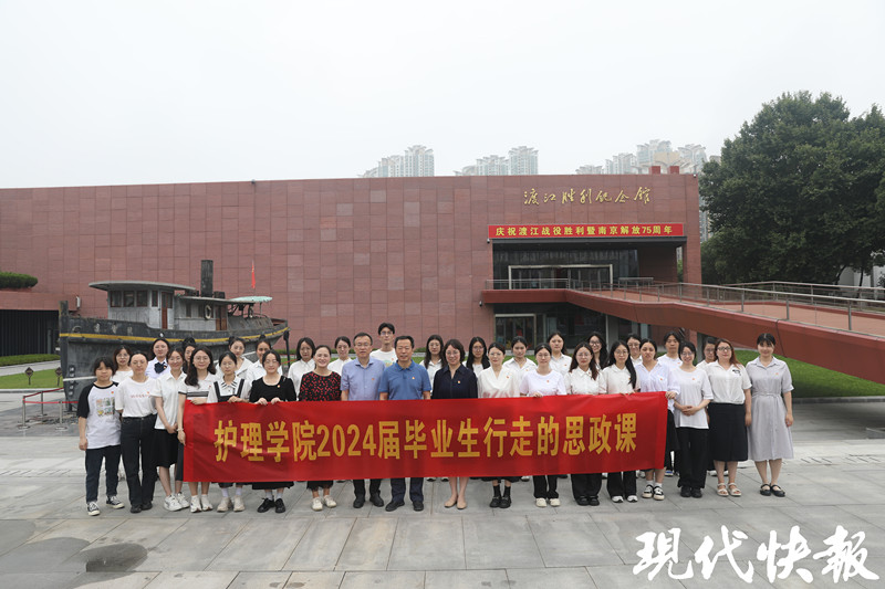 现代快报讯(通讯员 张晓路 徐澔 记者 李楠)6月27日,南京医科大学护理学院组织2024届毕业生党员前往渡江胜利纪念馆,开展了一堂“行走的思政课”,这也是这一届学生在大学的“最后一堂思政课”。南医大党委副书记、副校长夏有兵为毕业生党员们授课。