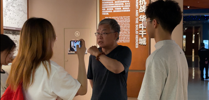 △实践队在雨花台烈士纪念馆内对一名参观者开展访谈调研