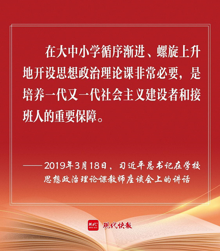 习近平总书记强调,“在大中小学循序渐进、螺旋上升地开设思想政治理论课非常必要,是培养一代又一代社会主义建设者和接班人的重要保障”。