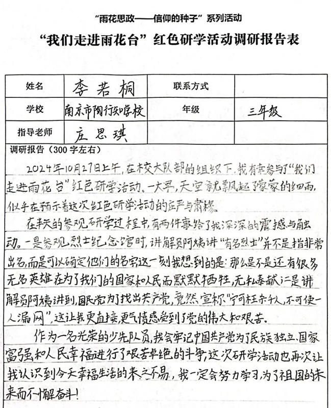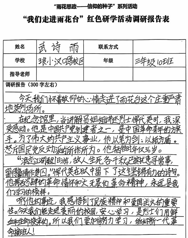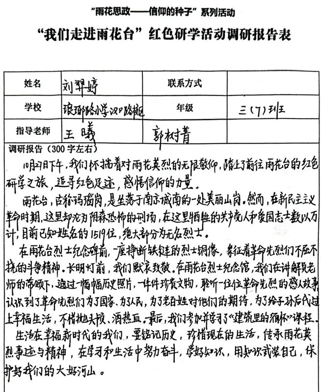 “我们走进雨花台”红色研学活动调研报告部分作品展示