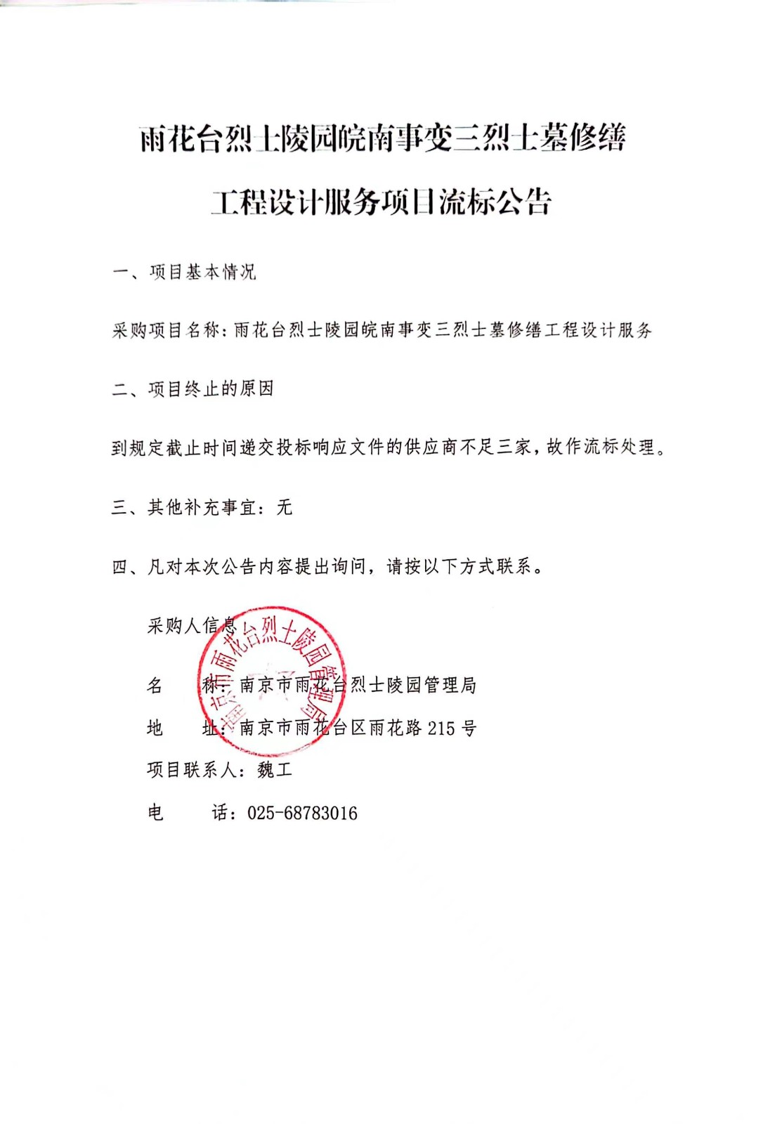 皖南事变三烈士墓修缮工程设计服务流标公告(第二次)
