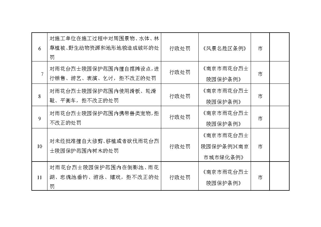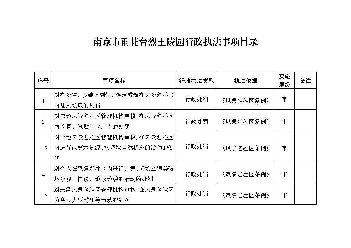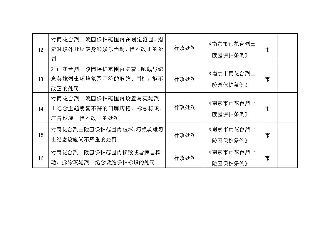 信息名称: | 南京市雨花台烈士陵园行政执法事项目录 | ||