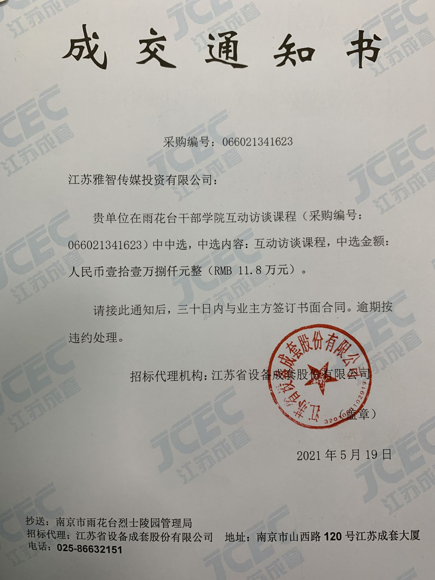 【公告】雨花台干部学院互动访谈课程中标通知书